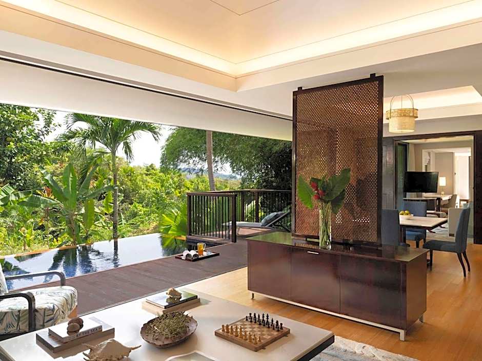 This Two-Bedroom Ocean View Pool Villa offers ocean views. The villa features two separate bedrooms, both with private bathrooms and a spacious living area. It also offers living area and an outdoor pavilion with an open-air balcony, a dining area, a private pool. This inlcudes the services of a private butler.